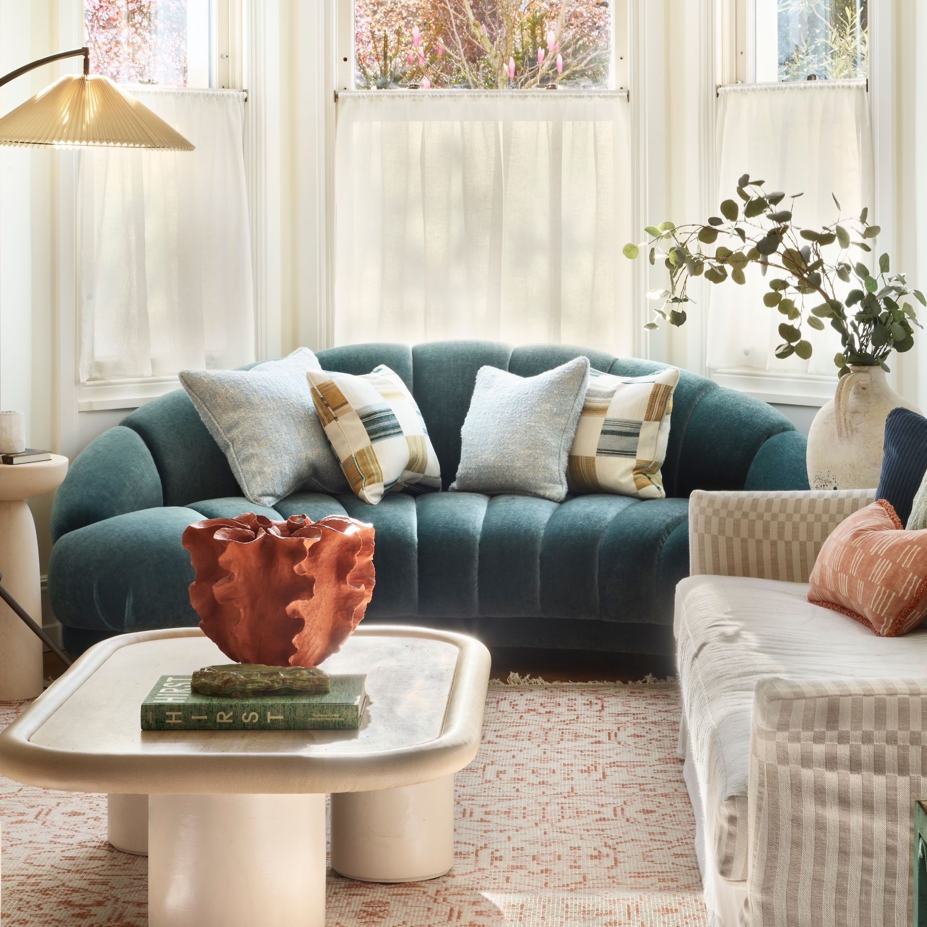 • Formas rompedoras: los sofás curvos, modulables o con diseño geométrico están en alza, huyendo de lo rígido y clásico.