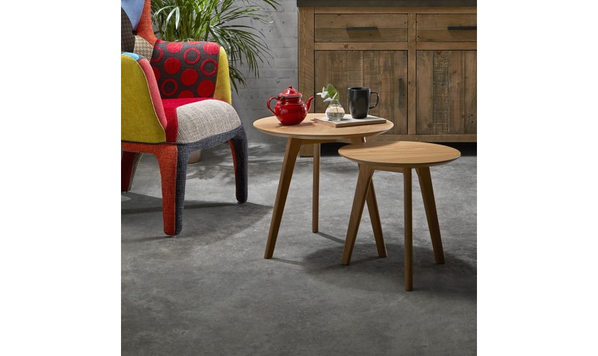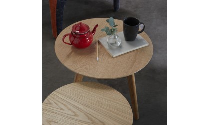 Aporta calidez, diseño y funcionalidad a tu salón con este set de dos mesas auxiliares de madera chapada. Su estilo minimalista y natural las convierte en piezas versátiles, perfectas para acompañar tu sofá, decorar un rincón de lectura o utilizar como soporte para lámparas, plantas o elementos decorativos.