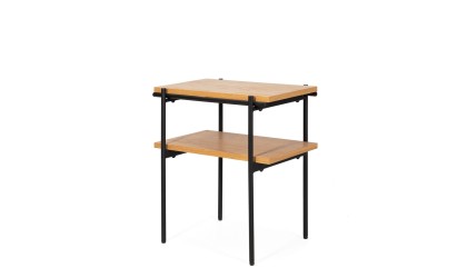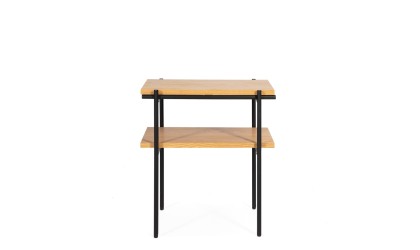 Diseño moderno, funcionalidad y estilo industrial se combinan en esta mesa auxiliar fabricada en madera chapada y estructura metálica. Su estética ligera, con líneas rectas y materiales en contraste, la convierte en una pieza ideal para salones contemporáneos, espacios nórdicos o ambientes de estilo industrial suave.